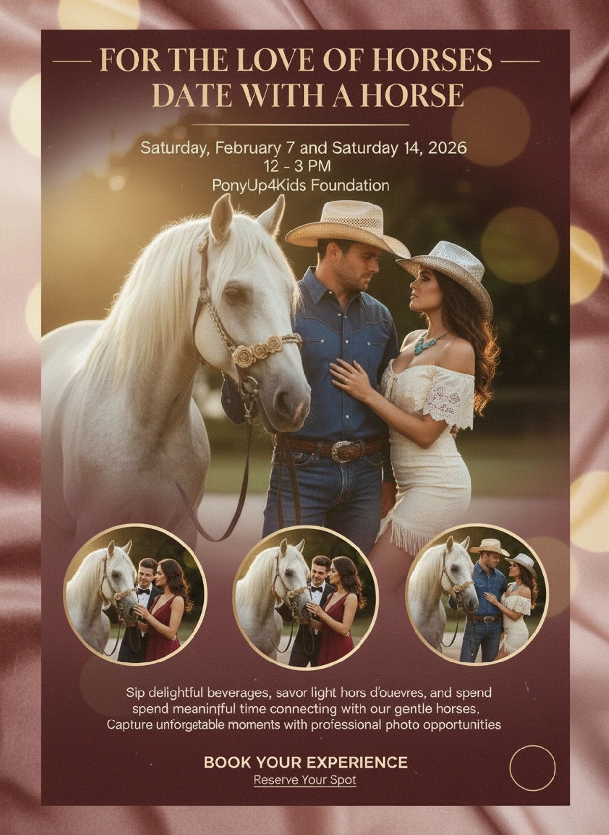 This Valentine’s season, trade the ordinary dinner date for something truly unforgettable. PonyUp4Kids Foundation invites couples to For the Love of Horses – Date with a Horse, a one-of-a-kind romantic experience where connection, laughter, and a little magic come together—both with each other and with our incredible horses.