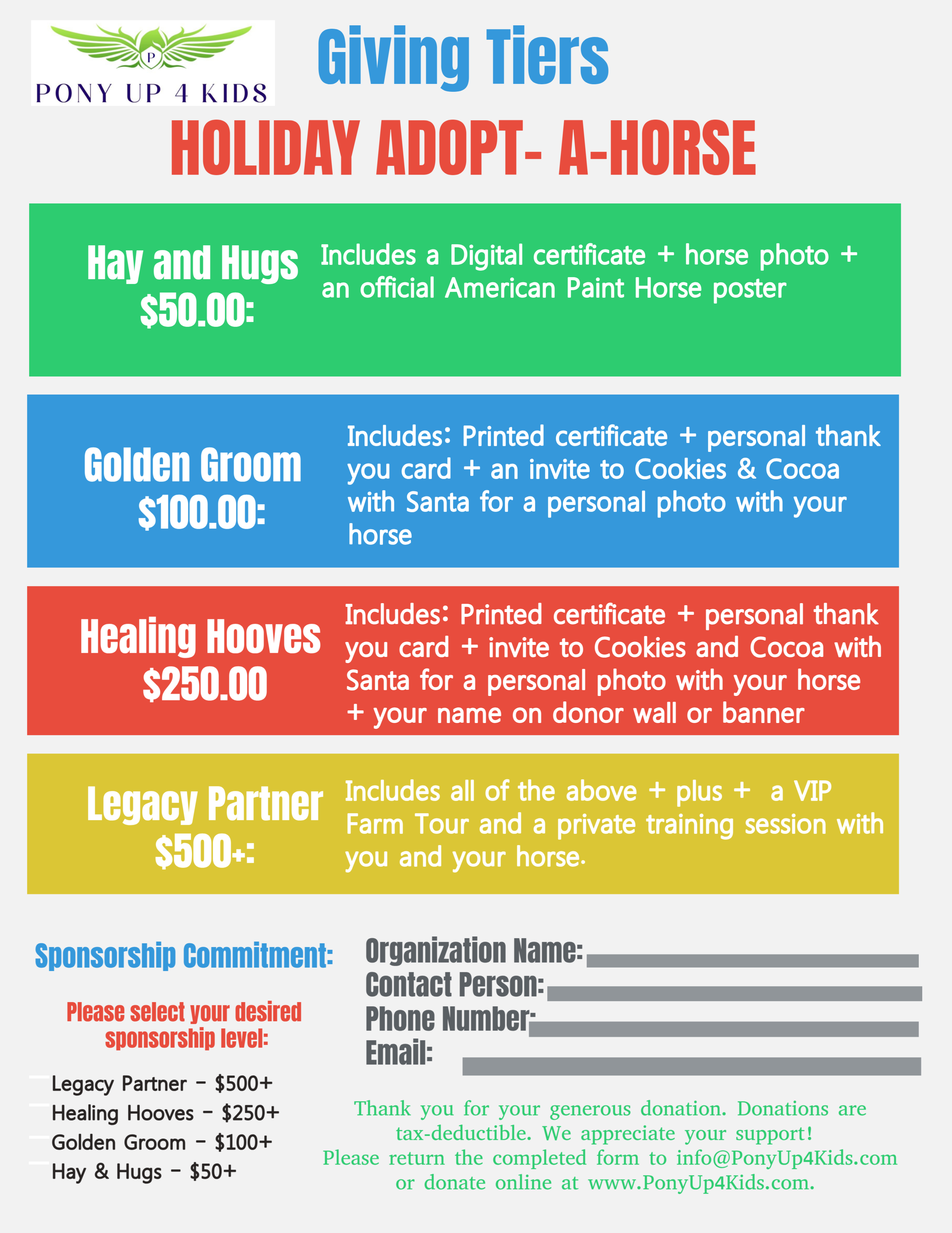 PonyUp4Kids Foundation Inc. is a 501(c)(3) nonprofit organization. IRS subsection 501(c)(3) Public Charity. Donations are tax-deductible.